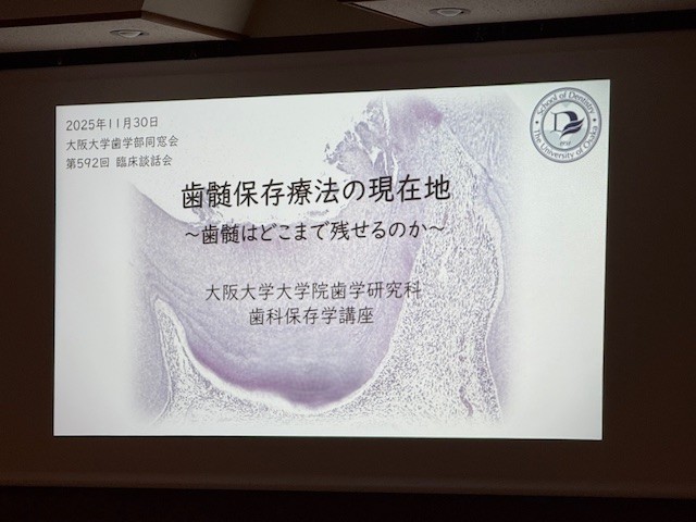 令和7年11月30日㈰、大阪大学歯学部保存学講座主催のセミナー「歯髄保存療法の現在地~歯髄はどこまで残せるか」に参加してきました。