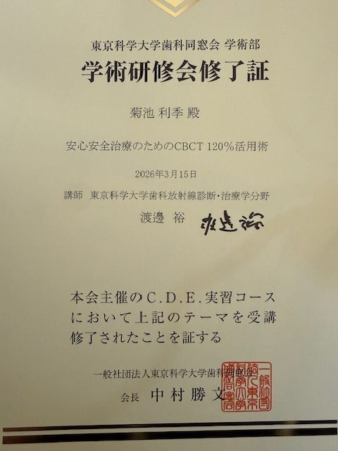 令和8年3月15日(日)東京科学大学歯学部にて開催された「安心・安全治療のためのCBCT120%活用術」を受講いたしました。